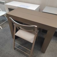 У стульев — металлический каркас, сиденье покрыто экокожей.