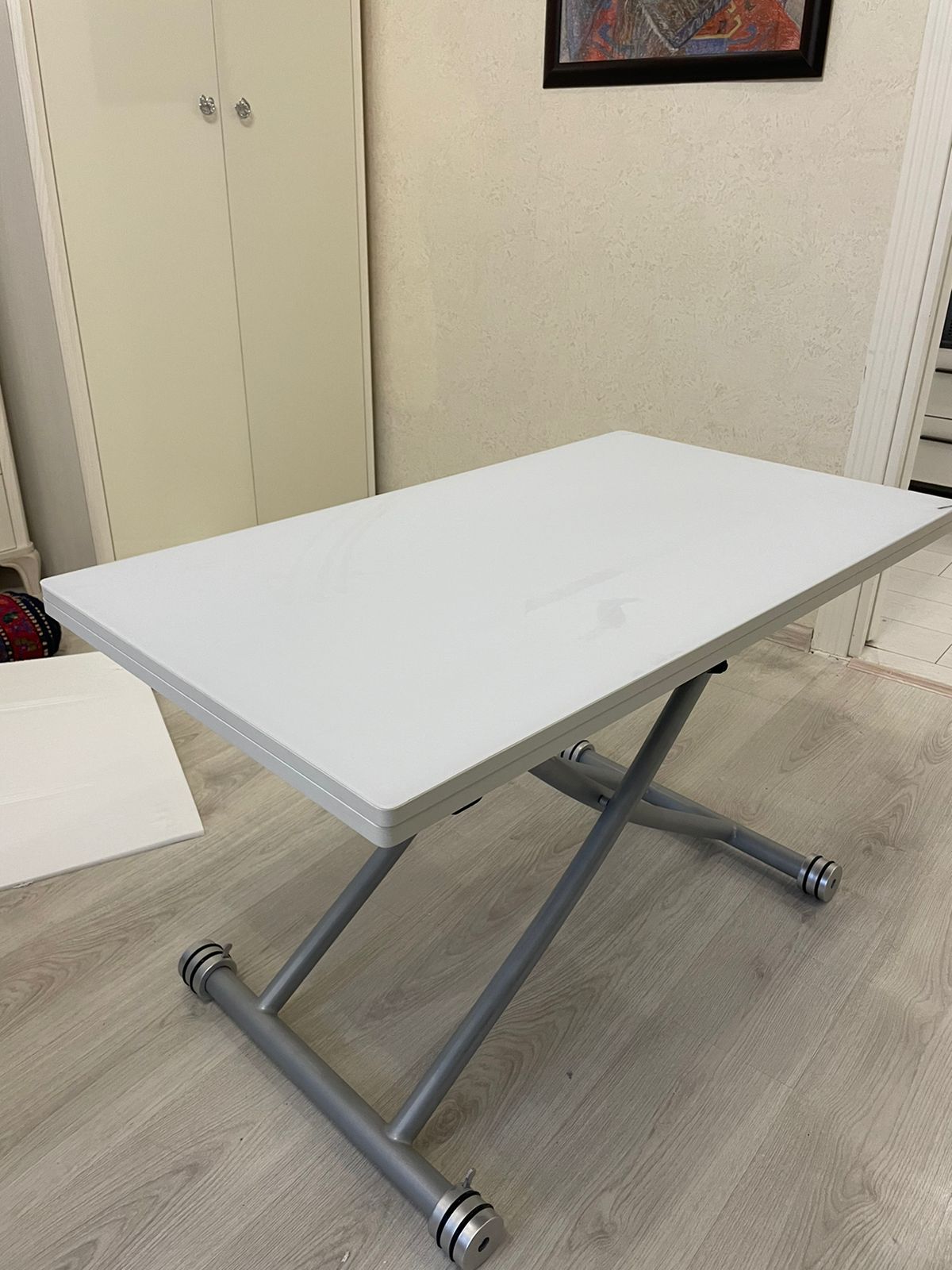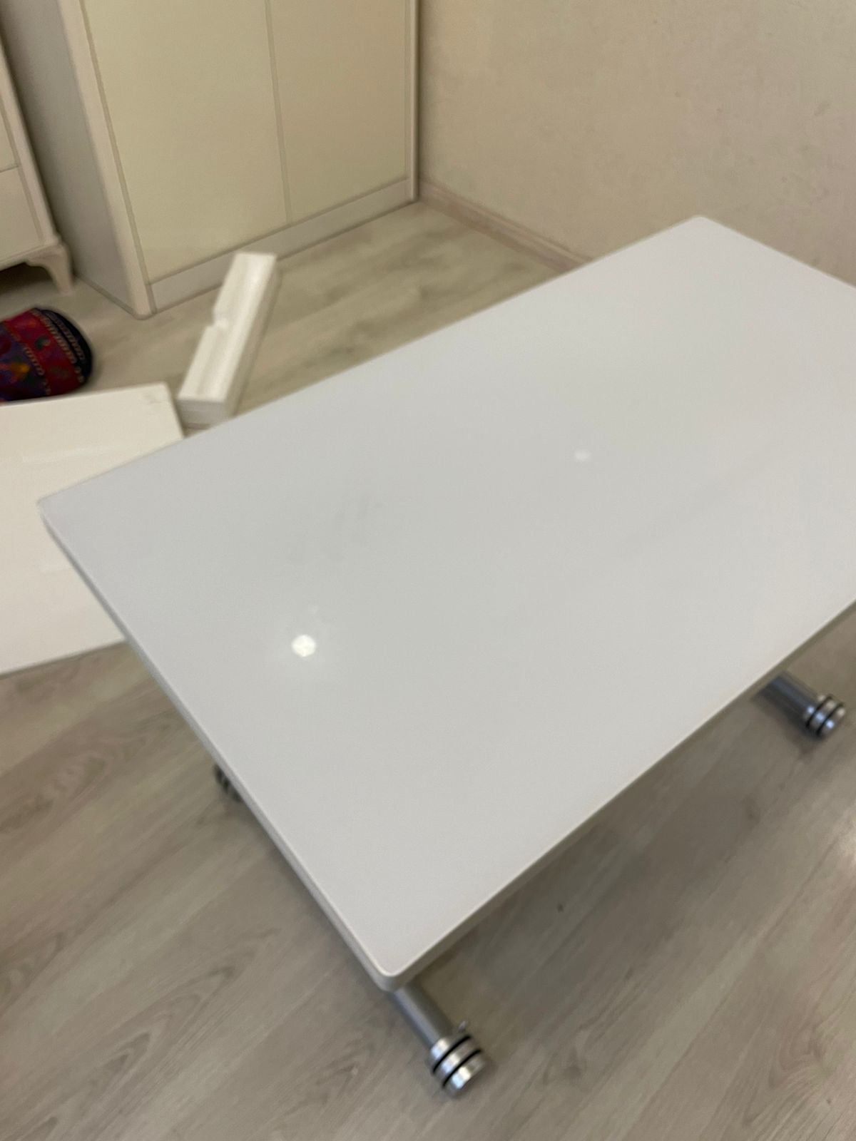 Для квартиры небольшой площади - идеальный вариант. Очень просто превращается из небольшого по размеру журнального столика в большой обеденный стол, за которым без проблем поместятся 6 человек.